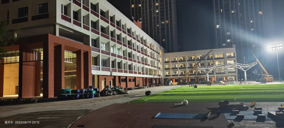 從2021年8月27日發(fā)出龍健小學概念方案公開征集邀請函,邀請全國各大設計院參與概念方案設計。在2021年10月21日學校建設指揮部上確定了方案設計單位,兩江建設項目團隊充分考慮教育局、學校的需求和安全要求,多次組織設計單位相關人員進行匯報,方案最終獲得了教育局、規(guī)資局的同意。2022年10月8日正式開工建設,開工后恰逢疫情封控影響,項目各參建團隊克服了重重困難,在7、8月頂著酷暑高溫,部分工序徹夜施工,高峰期施工總人數(shù)達500人以上,經(jīng)過11月的努力,在2023年9月5日項目全部完工,移交業(yè)主單位。