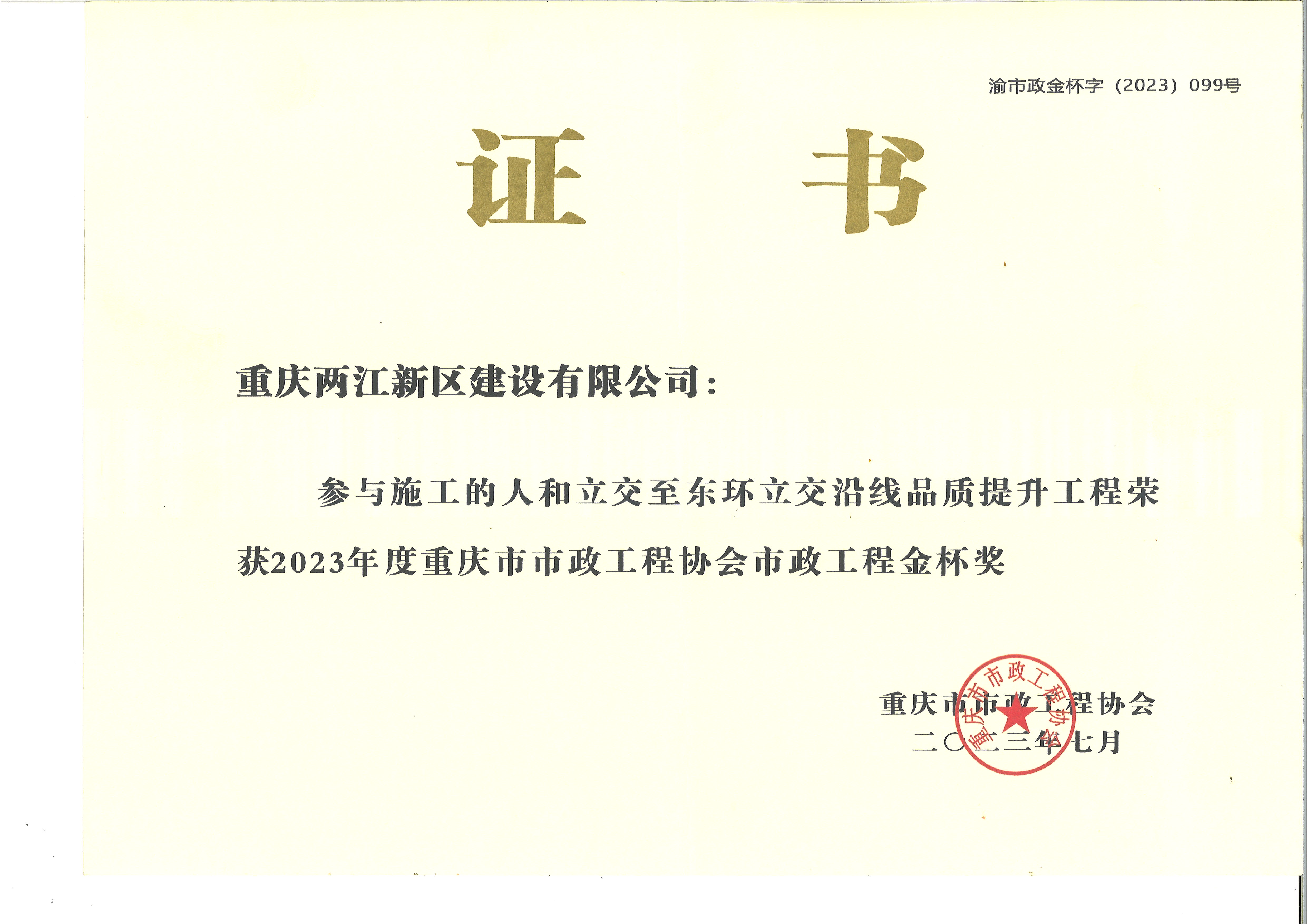 重慶市市政工程協(xié)會市政工程金杯獎